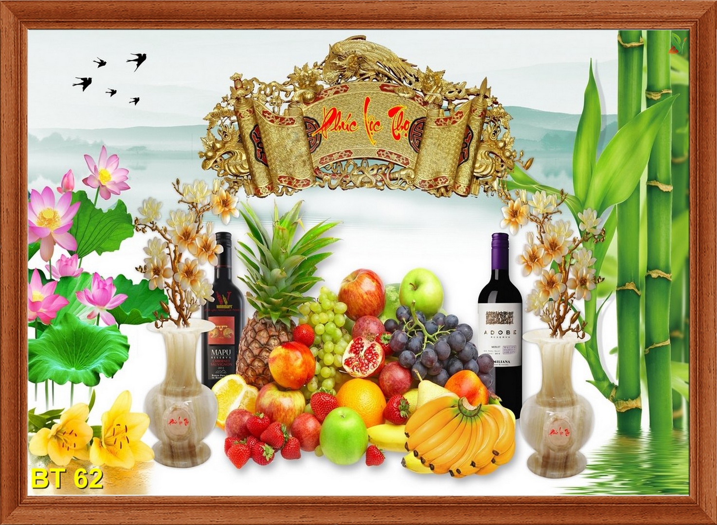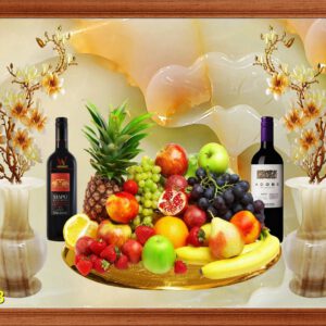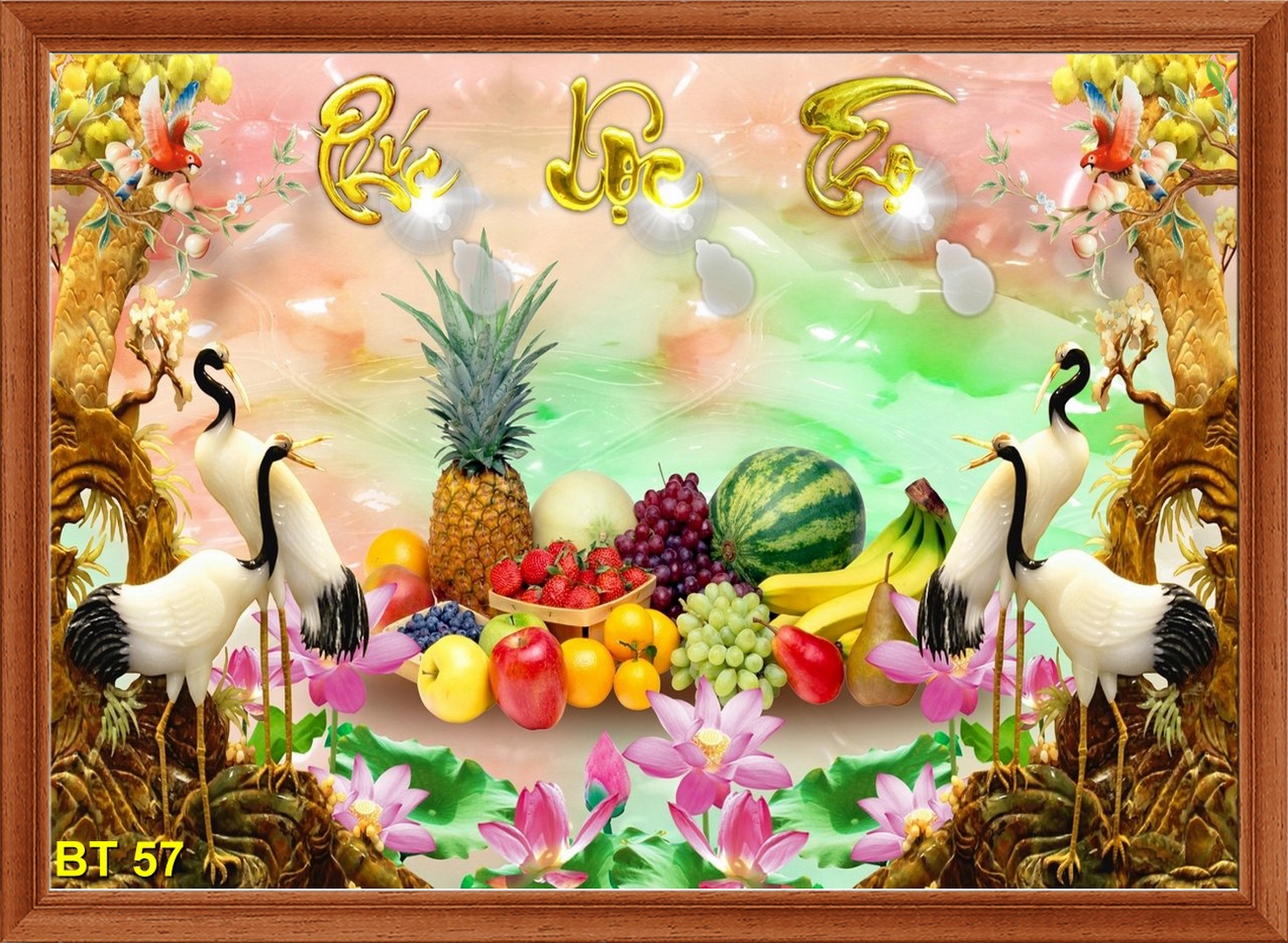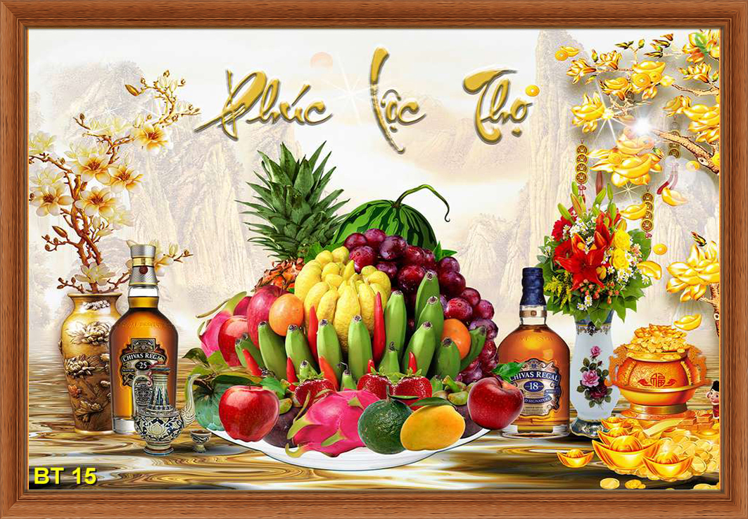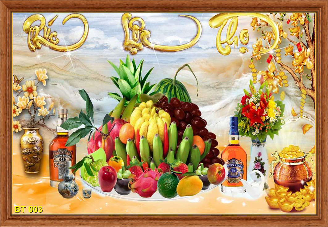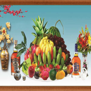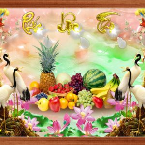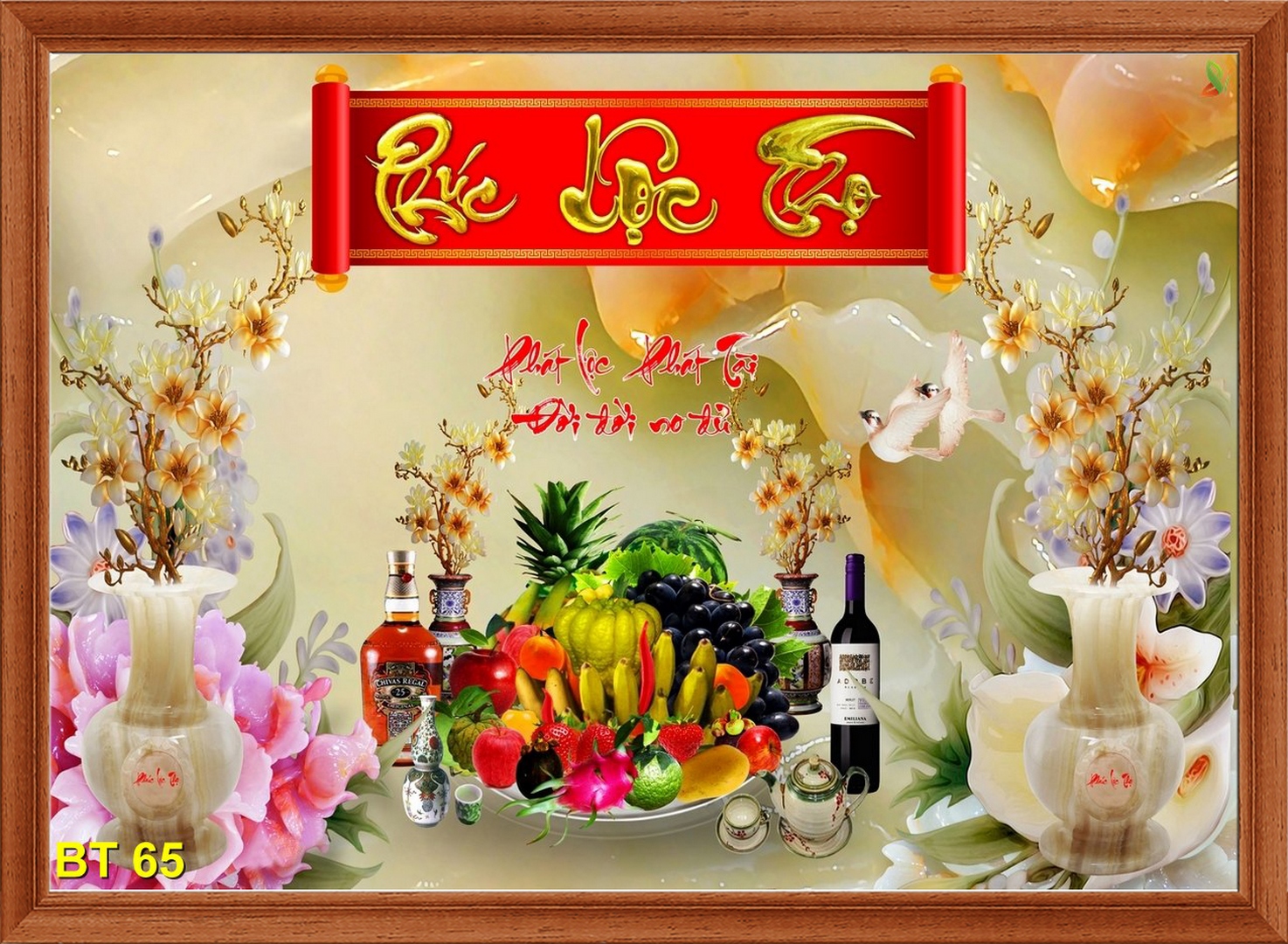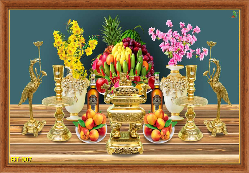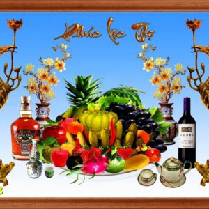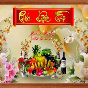 Tranh 3d dán Bàn Thờ Mâm Ngũ Quả Tụ Lộc Phú Quý đầy nhà
