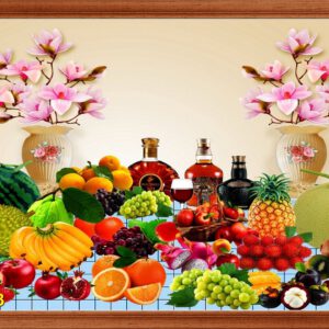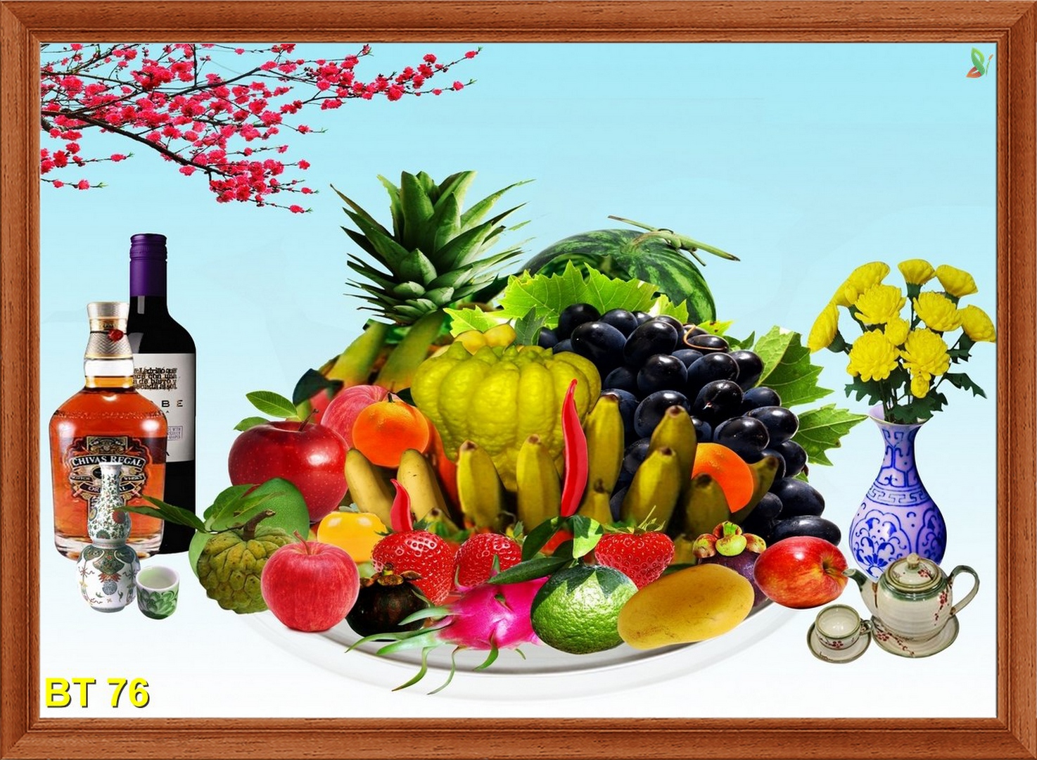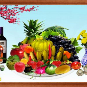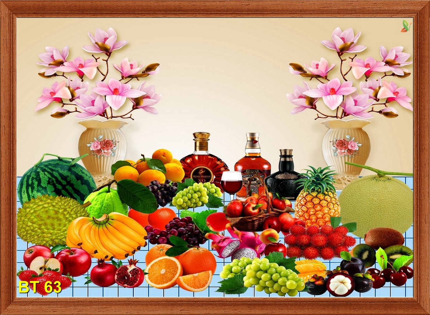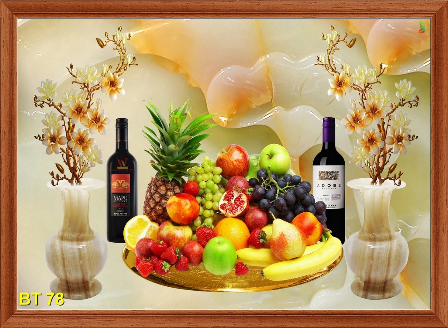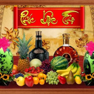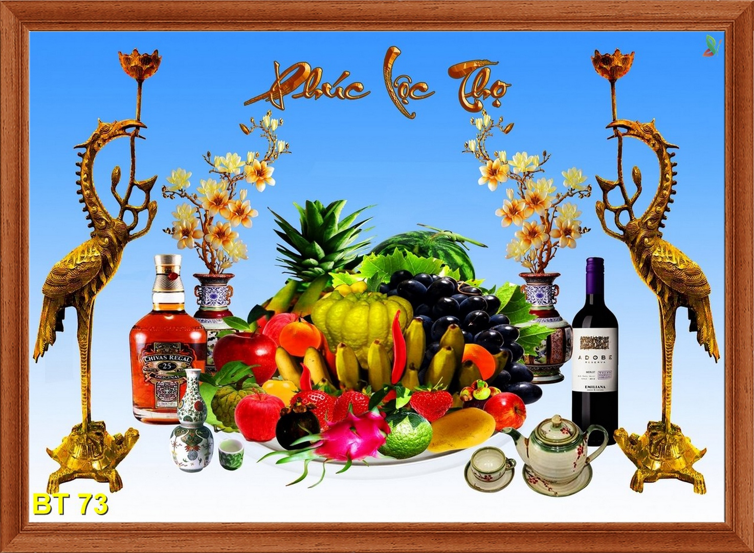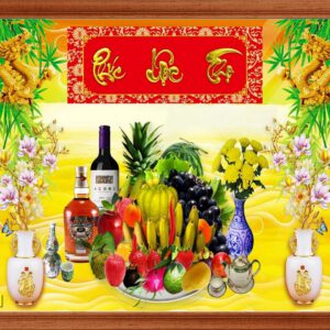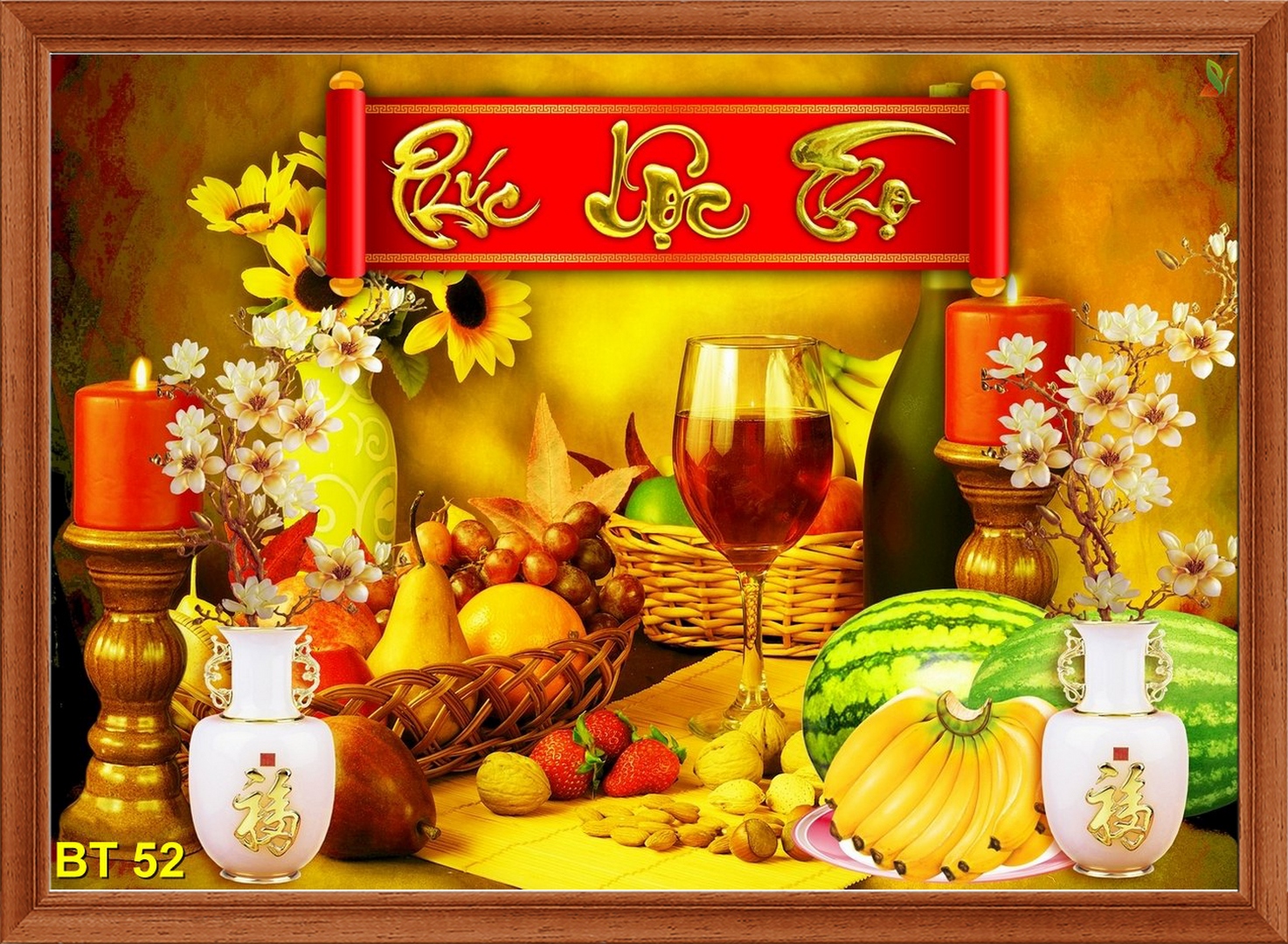 Tranh 3d dán Bàn Thờ Mâm Ngũ Quả Tụ Lộc Phú Quý đầy nhà