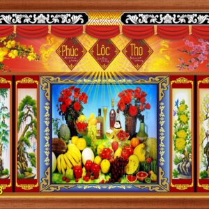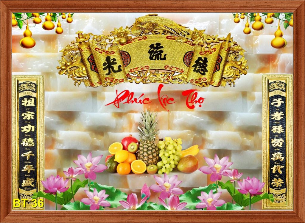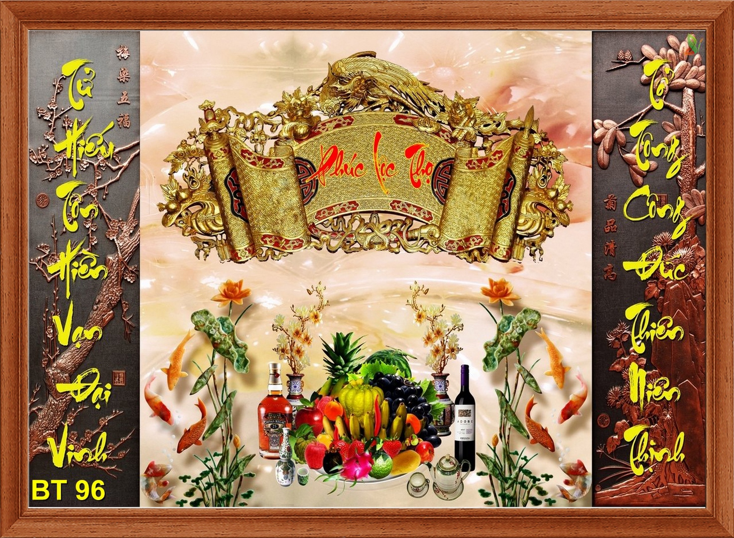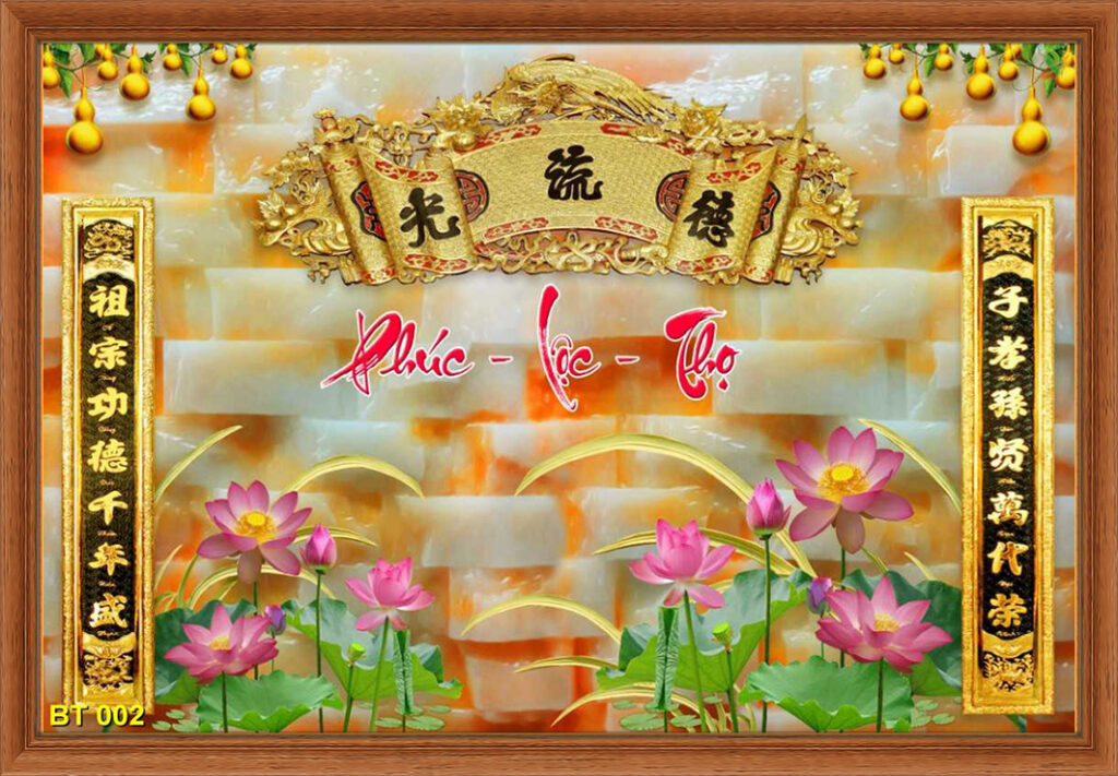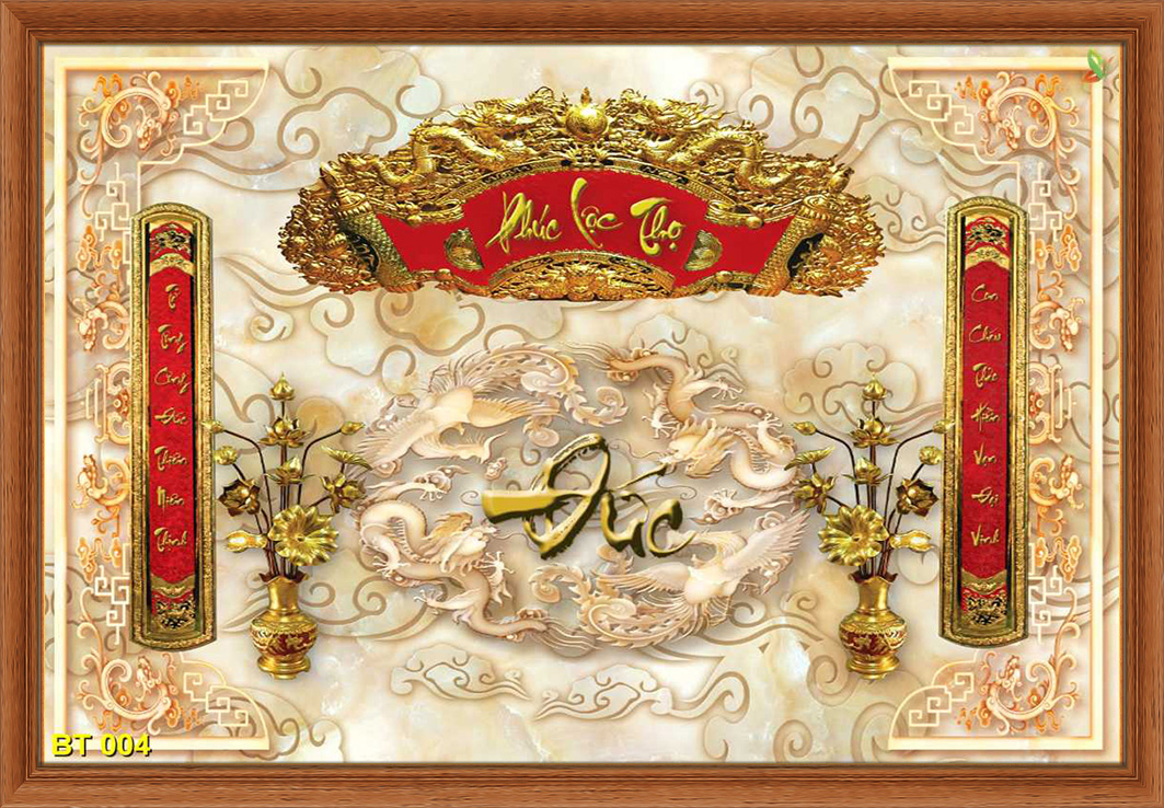 - Tranh dán bàn thờ 3d với các hình ảnh chữ Phúc Lộc Thọ được coi là biểu tượng phong thủy thu hút may mắn và thịnh vượng.