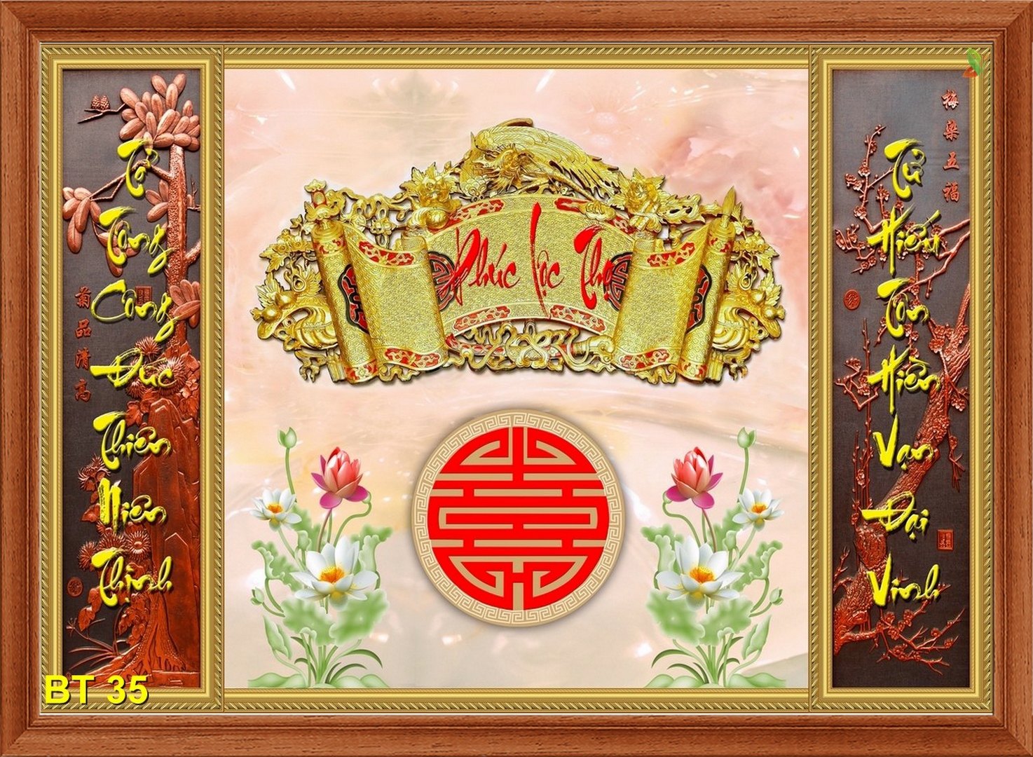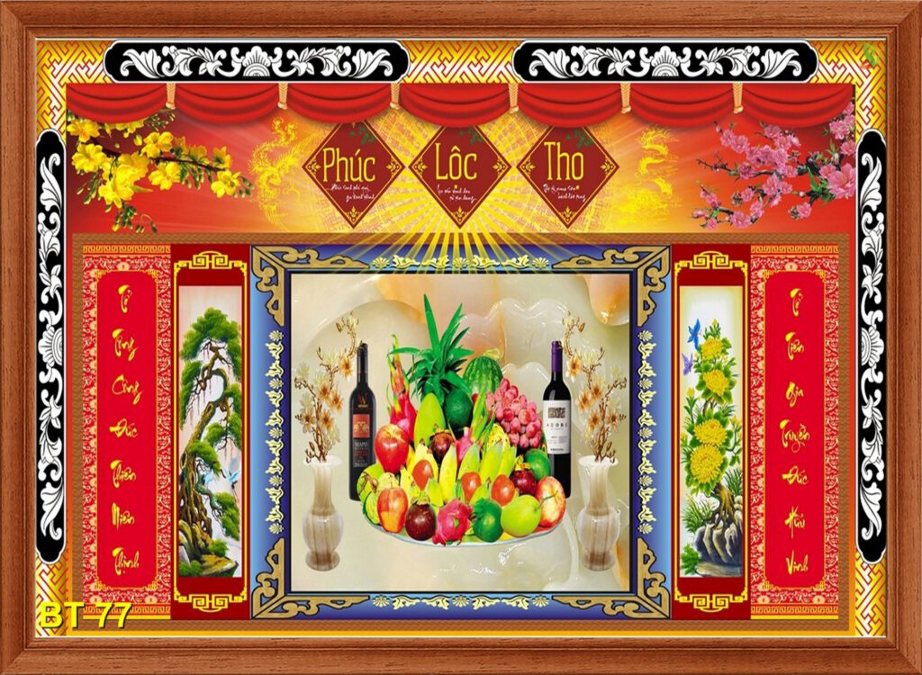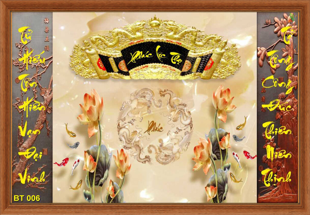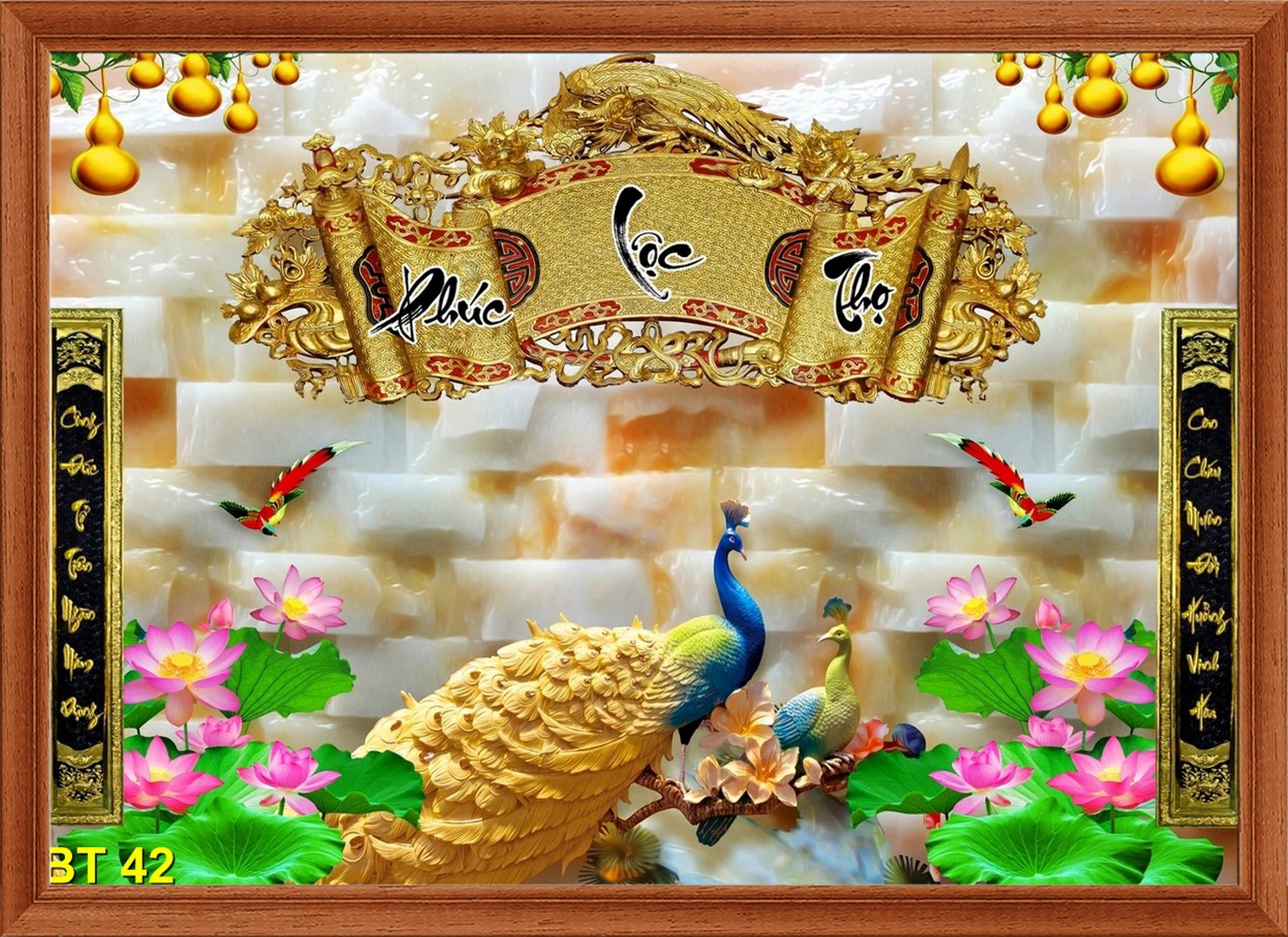 - Tranh dán bàn thờ 3d với các hình ảnh chữ Phúc Lộc Thọ được coi là biểu tượng phong thủy thu hút may mắn và thịnh vượng.
