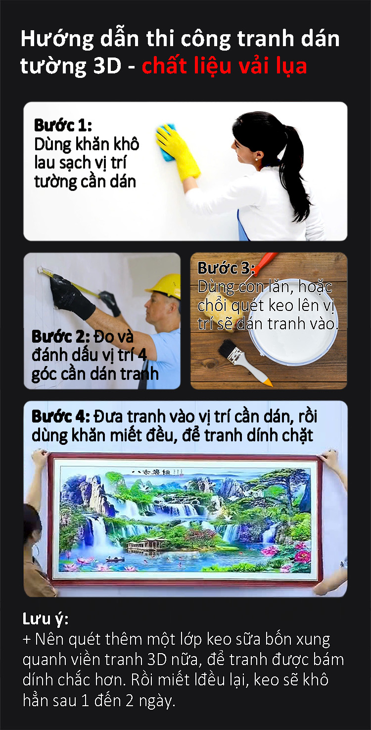 # Đối với chất liệu Vải Lụa Kim Sa: KHÔNG CÓ lớp keo ở mặt sau (Tặng lọ keo 500ml để quét dán tranh)