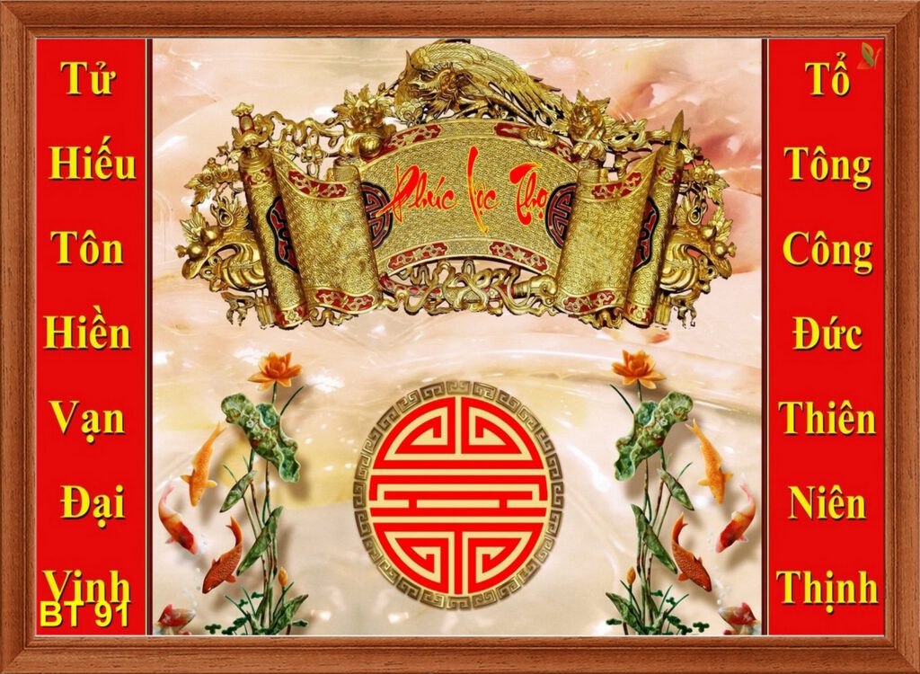 Các mẫu Tranh dán bàn thờ gia tiên chữ Phúc Lộc Thọ hút Tài Lộc