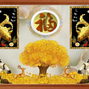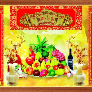- Tranh dán bàn thờ 3d được thiết kế với màu sắc chủ đạo là vàng và đỏ – hai màu sắc phong thủy thể hiện sự may mắn, giàu có, và thịnh vượng.